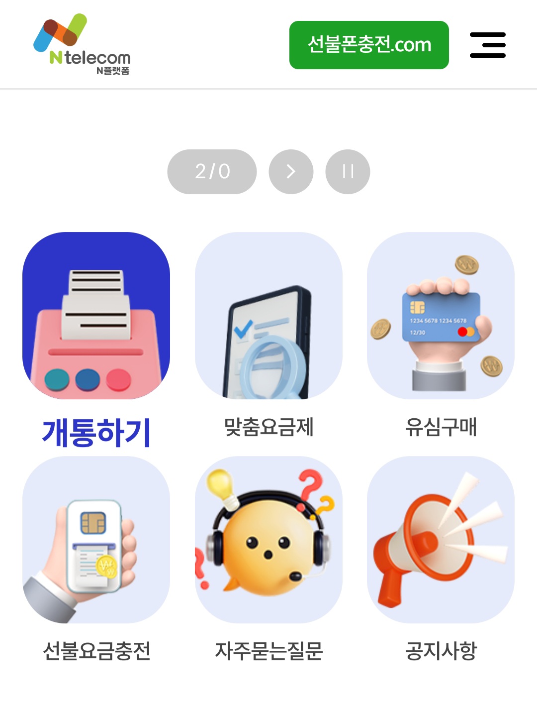 1️⃣ '선불폰충전.com' 접속 후 개통하기 클릭 – 모바일 또는 PC에서 사이트 방문