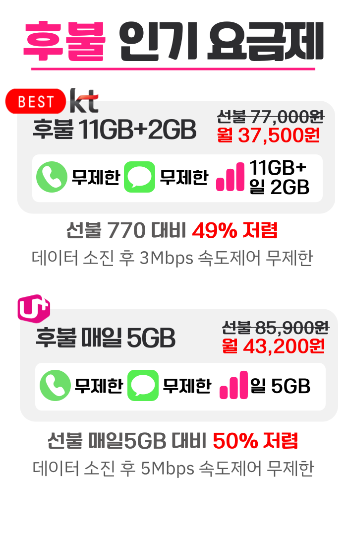 약정이나 위약금 없이 경제적으로 이용할 수 있어 인기가 높습니다.